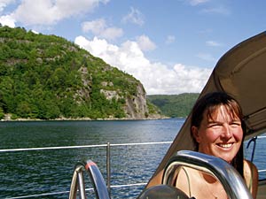 Donderdag vertrekken we om Kaap Lindesnes te ronden en met de voorspelde windkracht vier lijkt ons dat een prettig tochtje. Helaas ook deze keer pakt het weer anders uit en we krijgen windkracht zeven over ons heen. We laveren op weg naar Rosfjord er dwars tegen in. Gelukkig geen zeeziekte deze keer en in de avond liggen we in een klein haventje aan het eind van het fjord. We hebben nog een poging gedaan om te ankeren maar dat lukte niet. Het is ook handiger om dit te doen als je uitgerust bent want we moeten er nog heel erg bij nadenken. In de baaien in dit fjord waar we zouden kunnen ankeren blijken ook geen andere boten te liggen die ons tot voorbeeld kunnen dienen.
