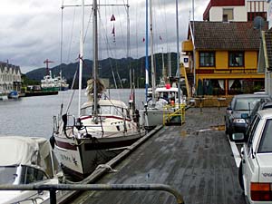 We varen door naar het plaatsje Flekkenfjord en leggen aan midden in de stad. We hebben hier welliswaar geen stroomvoorziening, toiletgebouw en douches, maar we hoeven dan ook geen havengeld te betalen.