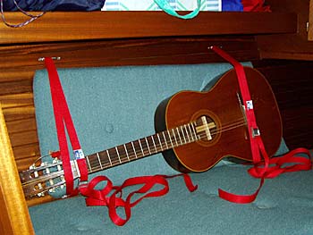 Behalve deze lijst hebben we sjorbanden in de voorpunt gemaakt, het rolreefsysteem van de fok volgespoten met teflonspray en één van de lieren losgmaakt en ingevet. Op de kraan hebben we een filtersysteem aangebracht dat er voor moet zorgen dat het water bacterie vrij blijft. Als dit systeem ons bevalt kopen we er nog één. We hebben opbergdoosjes gekocht en eindelijk de overal verspreide schroefjes, ringetjes, boutjes, nippeltjes, stekkertjes en moertjes overzichtelijk opgeborgen.